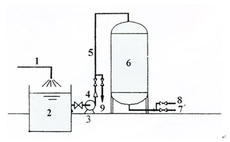 6.除鐵錳過濾器 7.出水管 8.反沖洗進水 9.反沖洗排水